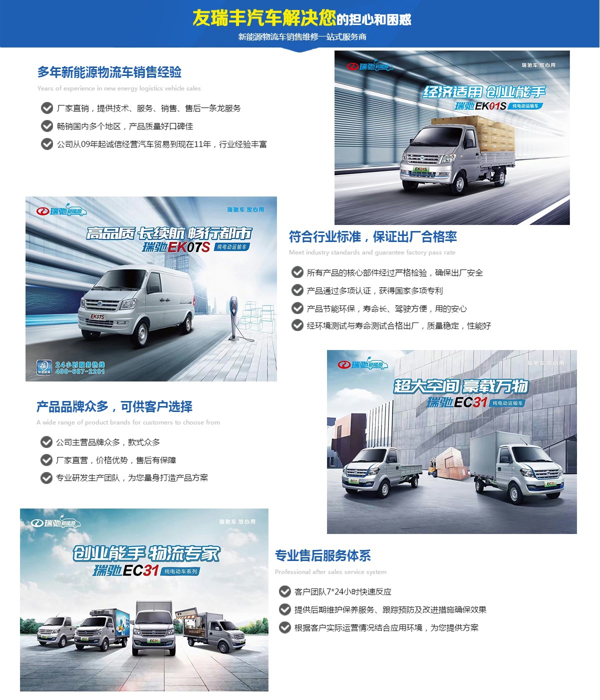 本公司為廈門(mén)新能源物流車(chē)專(zhuān)場(chǎng),【只做品質(zhì)好售后有保障的車(chē)】。公司主營(yíng) 瑞馳等品牌新能源物流車(chē),市場(chǎng)綜合反映良好。三電系統(tǒng)5年20萬(wàn)公里保修,銷(xiāo)售維護(hù)一條龍服務(wù),買(mǎi)得放心用得安心?!舅愿鼘?zhuān)心】一致得到廣大客戶(hù)好評(píng)及信任支持!地址廈門(mén)杏林杏前路121號(hào)。